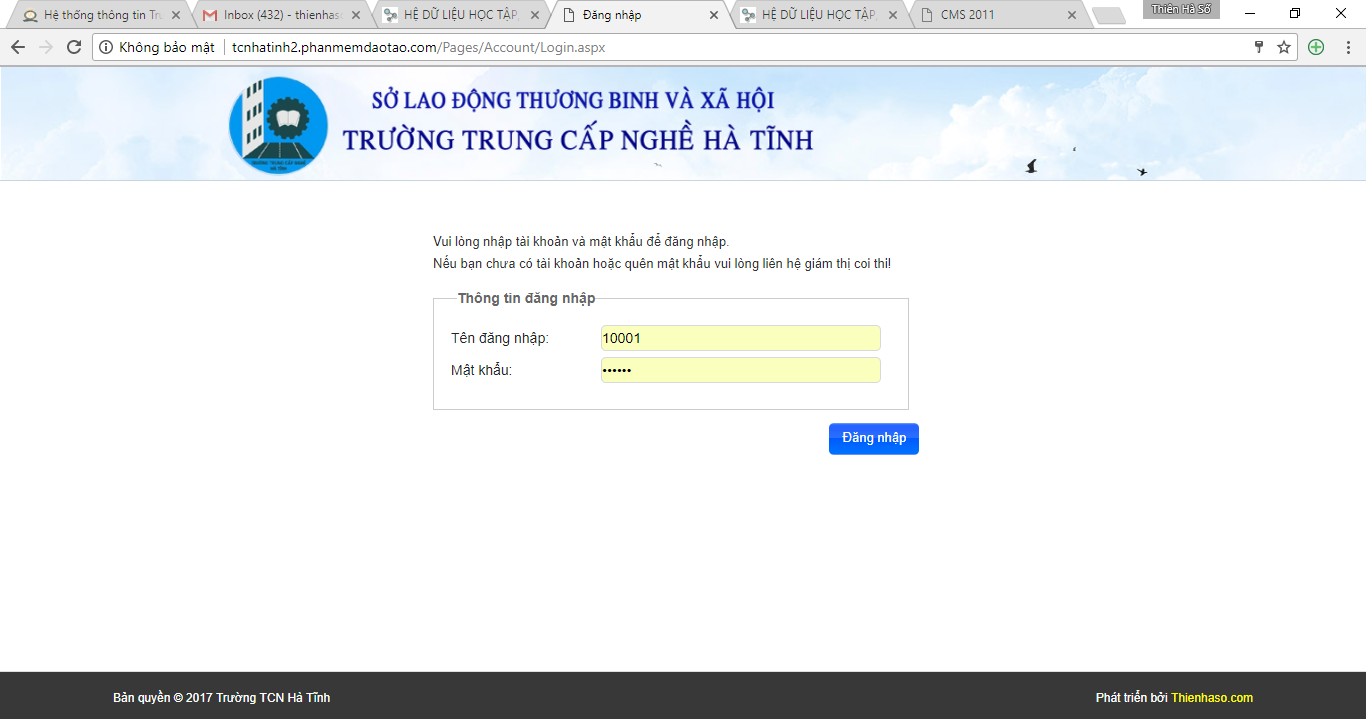 ĐĂNG NHẬP HỆ THỐNG PHẦN MỀM THI TRỰC TUYẾN TRƯỜNG HỌC:
